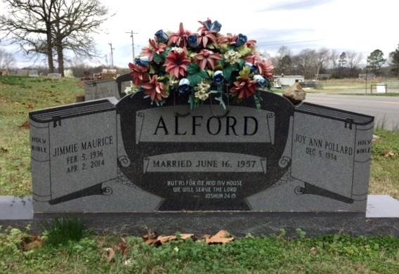 See the obituary of her husband, Roy Lee Alford, in this compilation. It includes a photo of their shared gravestone.