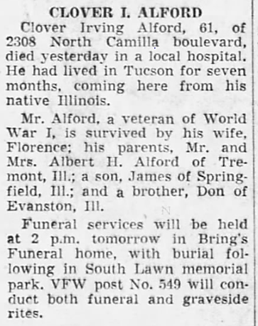 AAFA NOTES: SSDI records show that Troy Alford (SS# issued in AR) was born 18 Jan 1923 and died _____ March 1977, last residence Glendale, Maricopa Co., PA.