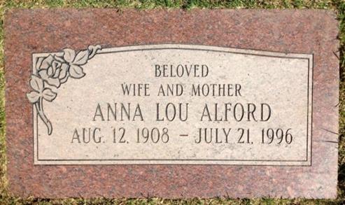 See the obituaries of her father, Ray Carlton Alford Sr.; and half-siblings Esther Isabel Alford Vargas and Ray Carlton Alford Jr.