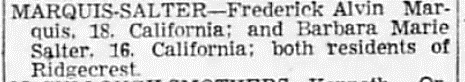 From CA Marriages: William R. Alford, age 31, married Betty L. Peterkin, also listed as Betty L. Barnes, age 28, on 30 Apr 1954 in Riverside Co., CA.