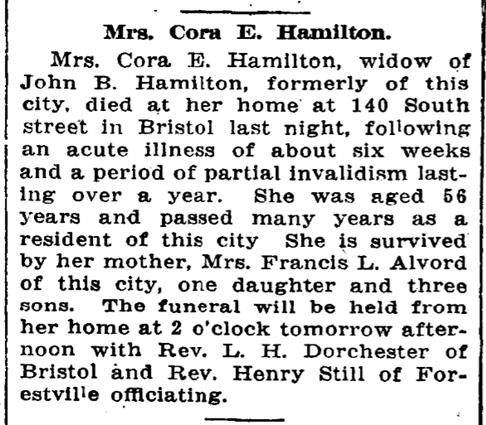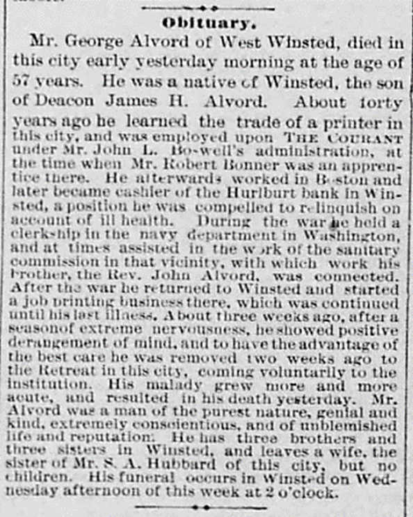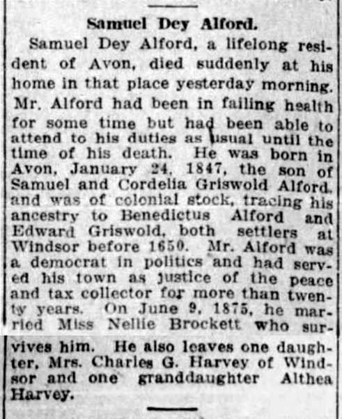 The families of many of the subjects of these Connecticut obituaries are represented in AAFA Alford Genealogies published on this website, where we are referring readers for more information.