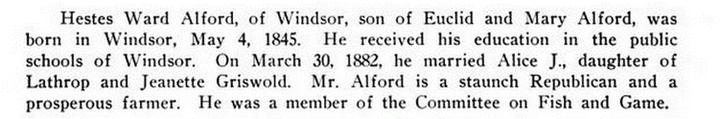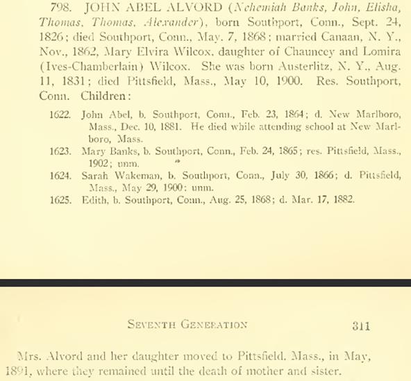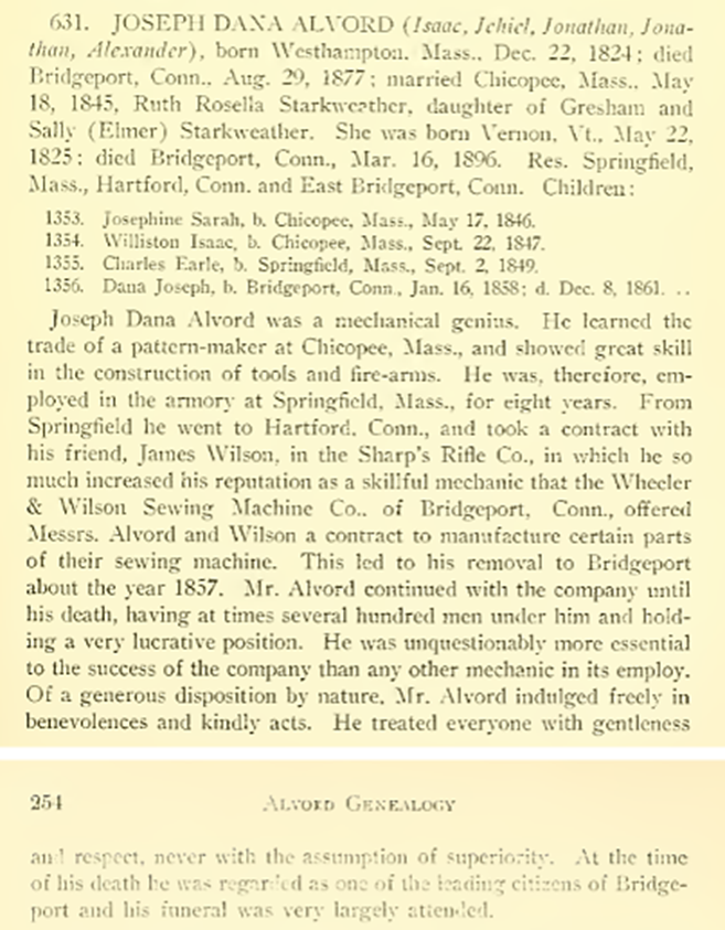 From Samuel Morgan Alvord, A Genealogy of the Descendants of Alexander Alvord An Early Settler of Windsor, Conn. and Northampton, Mass. (Webster, NY: A.D. Andrews, Printer, 1908), pp. 313–314:
