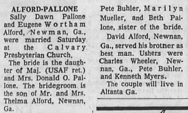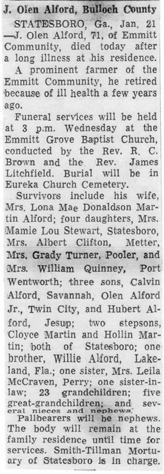 See the obituaries of her father, Paul Earnest Alford; and brothers Arthur Rex Alford, Billy James Alford, and Kenneth Oscar Alford in this compilation. We included the obituary of her brother Linton Alford in Florida Obituaries.