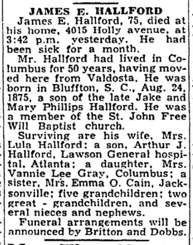 Place of Death: Columbus, Geogia