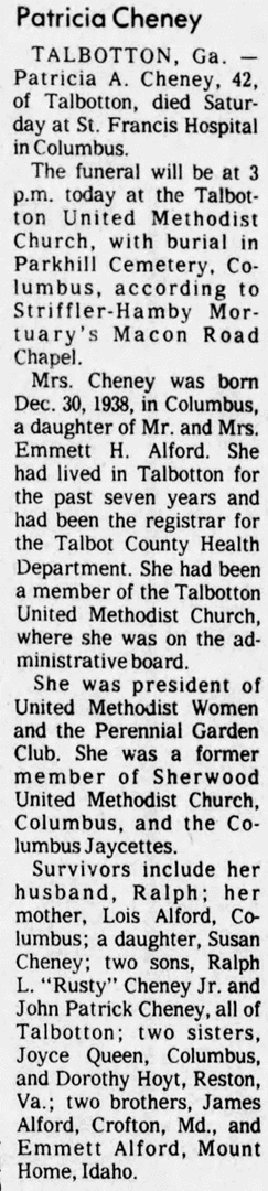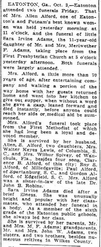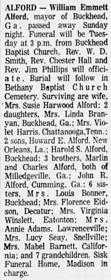 GEORGIA OBITUARIES OF ALFORDS