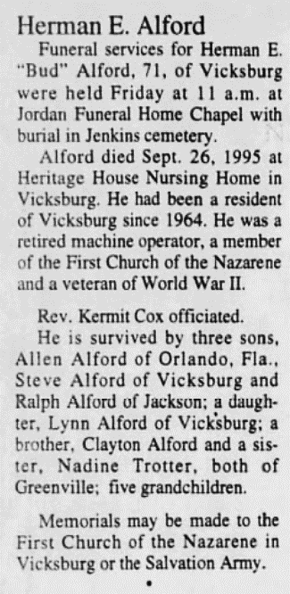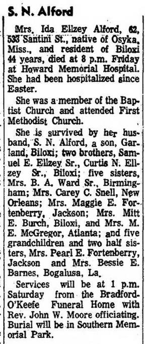 MISSISSIPPI OBITUARIES OF ALFORDS