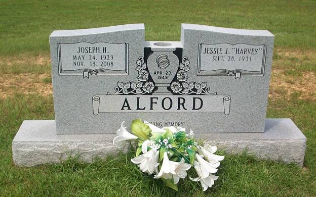 See the obituaries of her husband, James Whitfield Alford Sr., which includes a photo of their shared gravestone; and children Glenda Sue Alford Vaughn and James Whitfield Alford Jr. in this compilation.