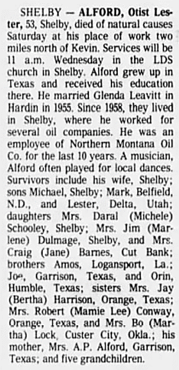 MONTANA OBITUARIES OF ALFORDS