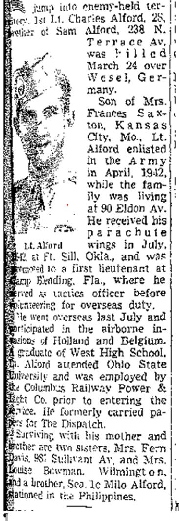 AAFA NOTES: SSDI records show that Adam Alford (SS# issued in WV) was born 2 Oct 1918 and died _____ June 1978, last residence Columbus, Franklin Co., OH.