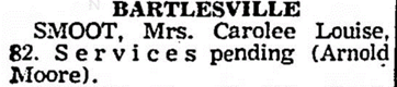 … Family Visitation Tues. 6-8pm at the Callaway-Smith-Cobb Funeral Home, Marlow, Oklahoma.