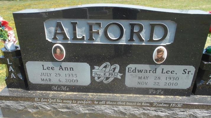 We included the obituaries of her siblings Alvin Harold Alford, Arthur Nathan Alford Sr., Betty Lucille Alford Pruitt, Marvin Noel Alford, and William S. Alford Jr. in Mississippi Obituaries; and of her sister sister Jenny Eldora Alford Windham in Tennessee Obituaries.