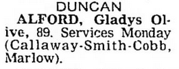See the obituaries of his mother, Gladys Olive Lemons Alford; and sister Thelma Marie Alford Smith in this compilation.